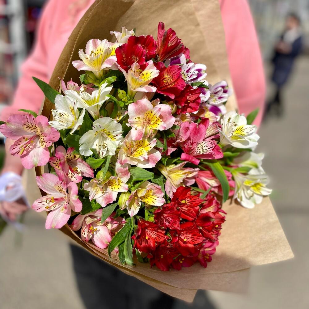Альстромерия – 11 шт.Крафт упаковка – 1 шт.Лента атласная – 1 шт.