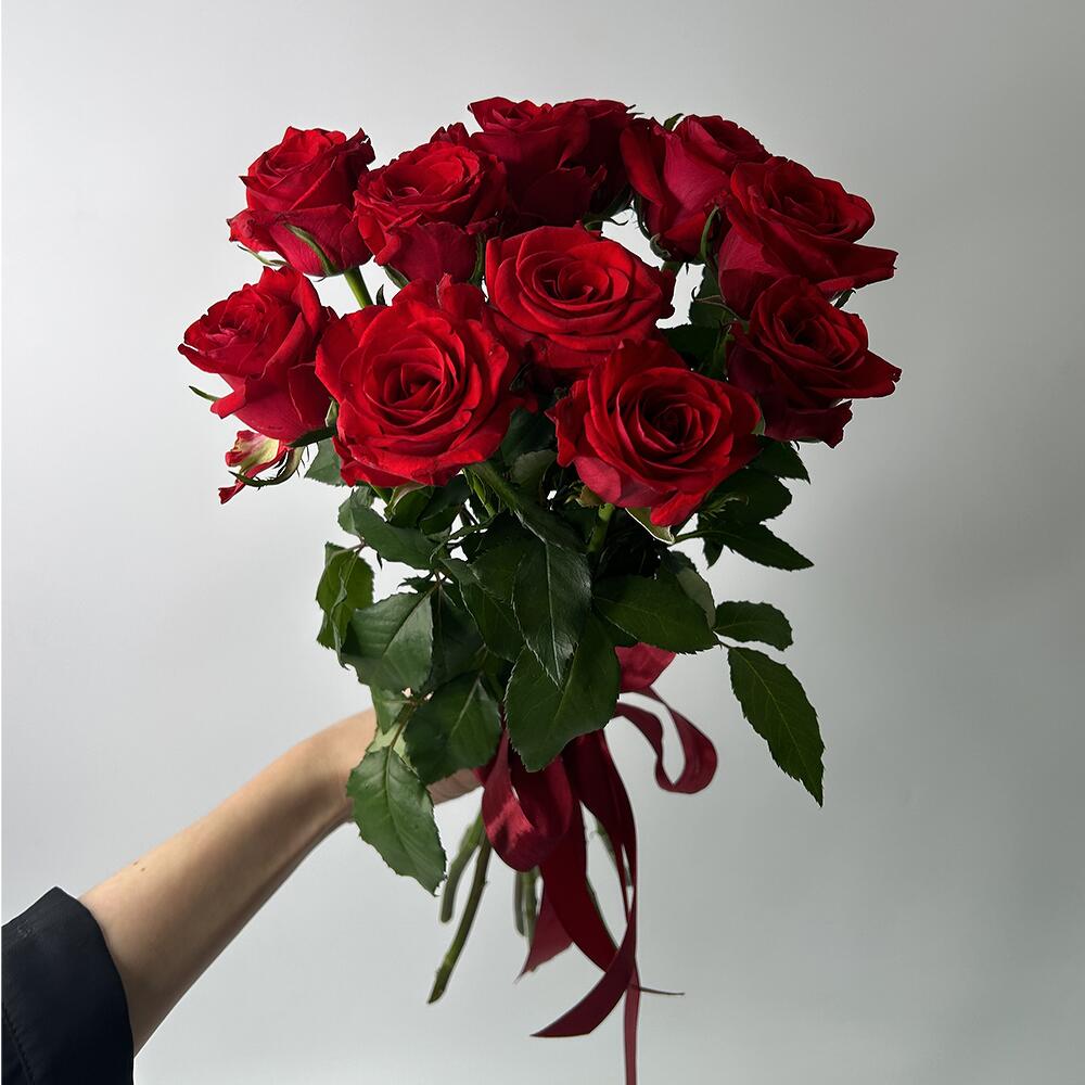 11 червоних троянд під стрічку