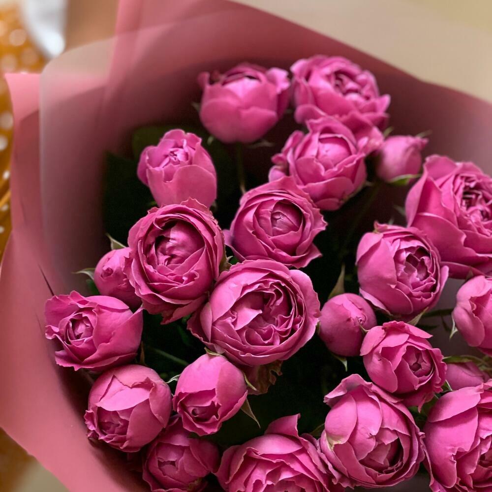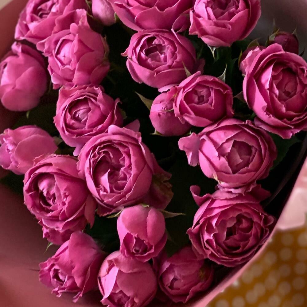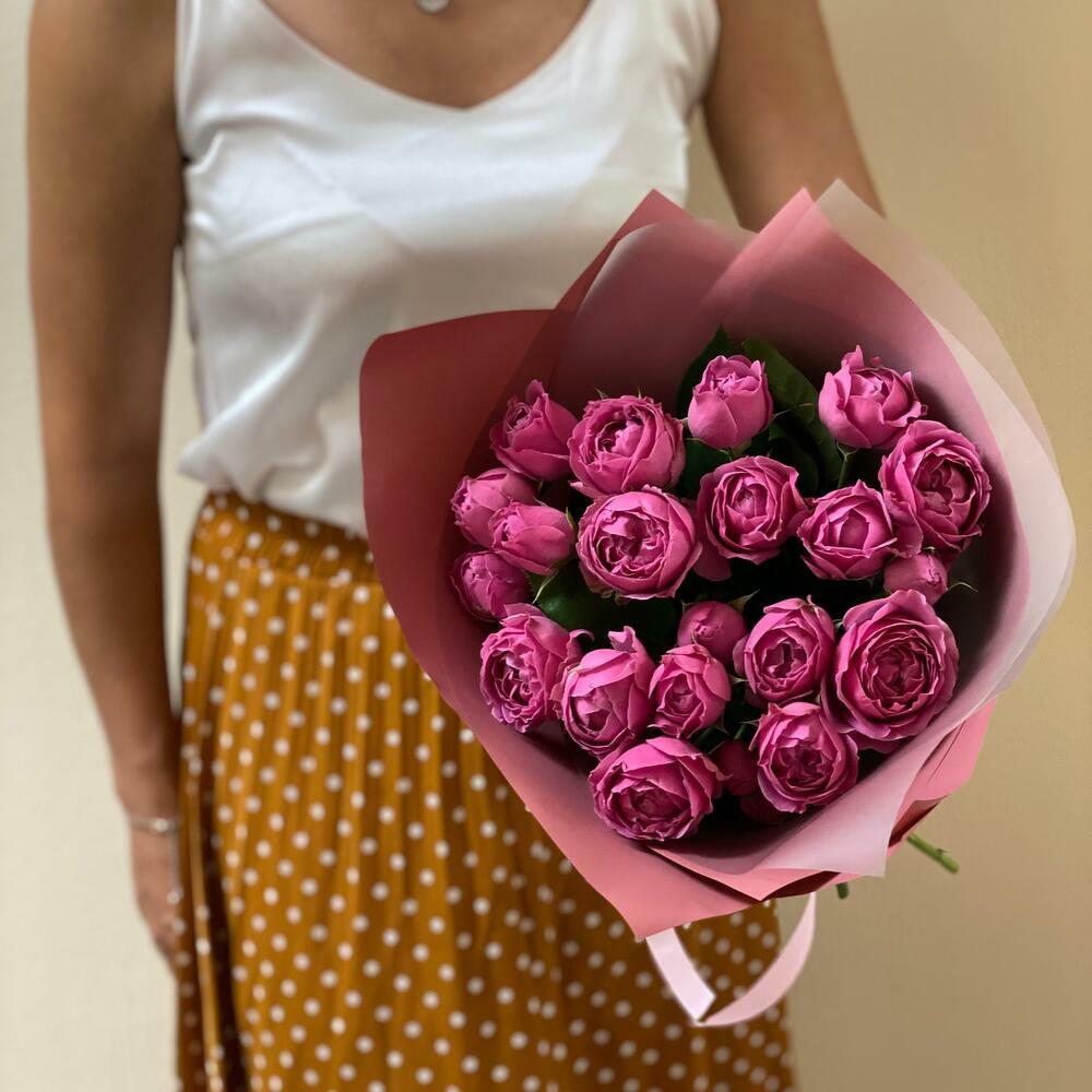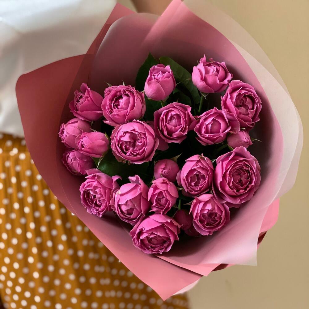 15 пионовидных кустовых роз монобукет