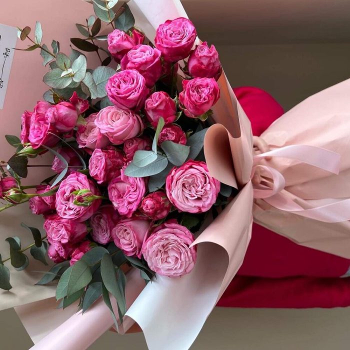 15 кустовых пионовидных роз сильва пинк. Букет 24 KimFlo