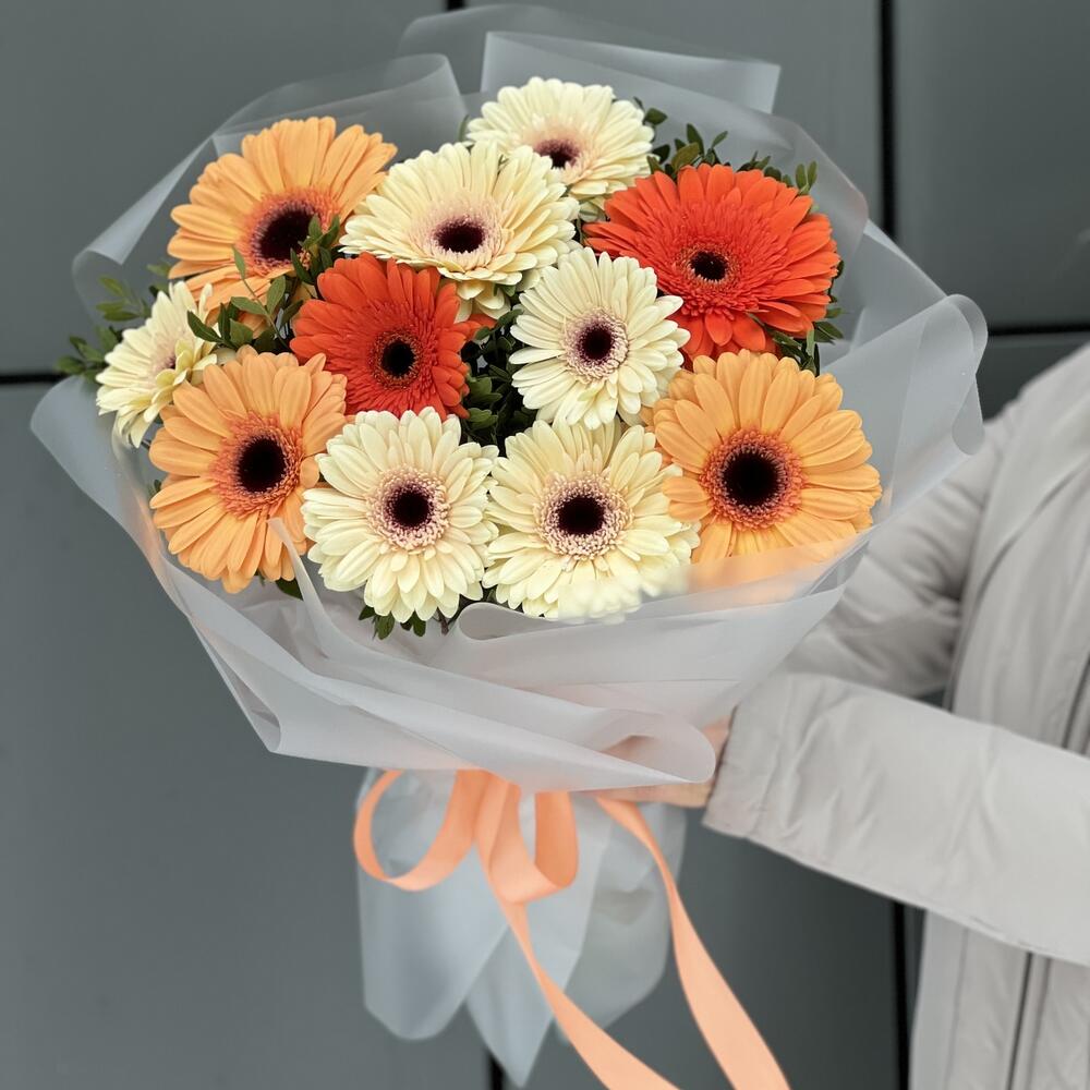 Писташ – 6 шт. Гербера – 11 шт. Оформление – 1 шт.