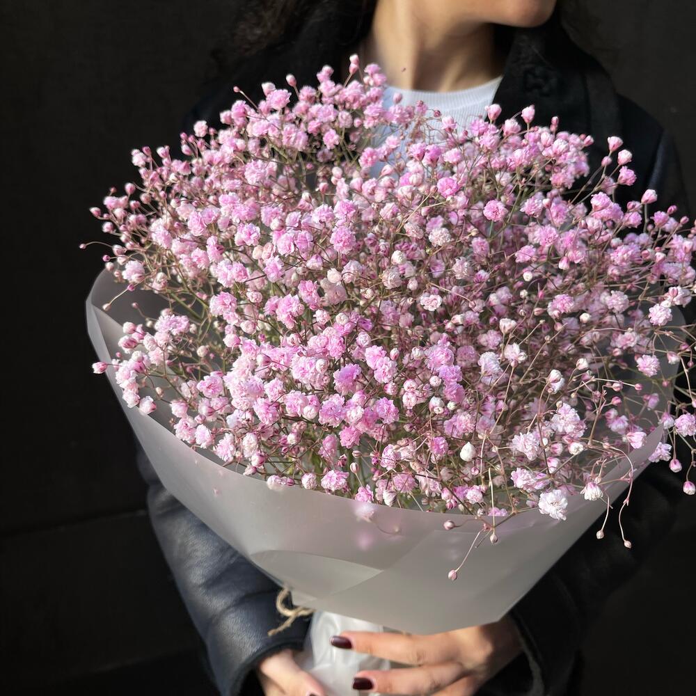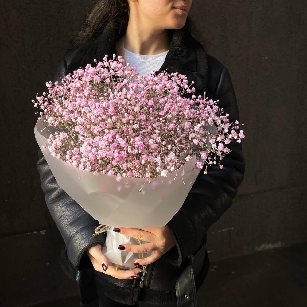 Букет 16: розовая гипсофила в упаковке