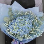 Гипсофила – 1 шт.Гортензия – 1 шт.Эвкалипт – 2 шт.Лента атласная – 1 шт.Тишью – 2 шт.Упаковка дизайнерская – 2 шт.