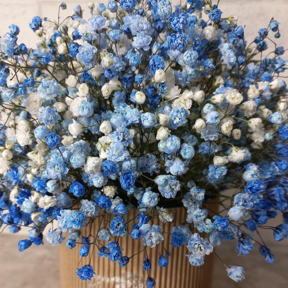 Голубое облачко гипсофилы в крафтовой коробке