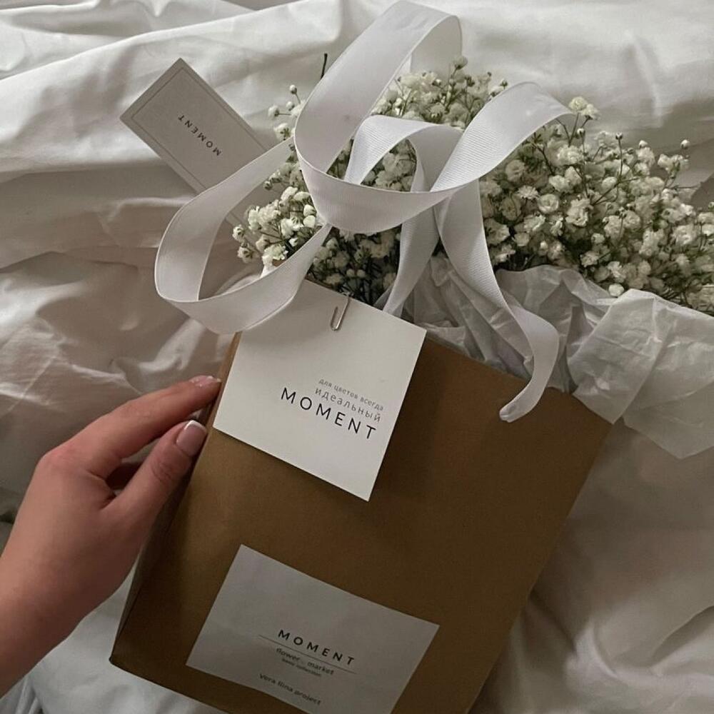 Композиция гипсофила, не требует вазы, цветы уже находятся в воде. Достаточно поливать композицию раз в несколько дней Все наши композиции мы доставляем в фирменном оформлении. Пакет мы используем для комфортной транспортировки цветов, и это стало неотъемлемой частью нашего оригинального дизайна М О М Е N ТПреимущественно, мы используем натуральные материалы для изготовления своих продуктов.Moment- eco friendly brandПо желанию, подпишем карточку к вашему букету, укажите это в примечаниях.Ценность нашей работы в ваших лучших М О М Е N Т ах.