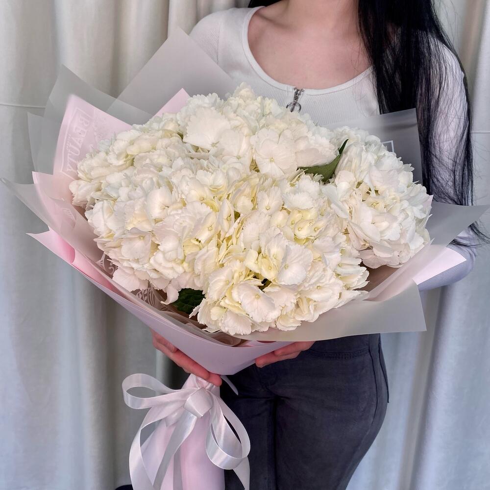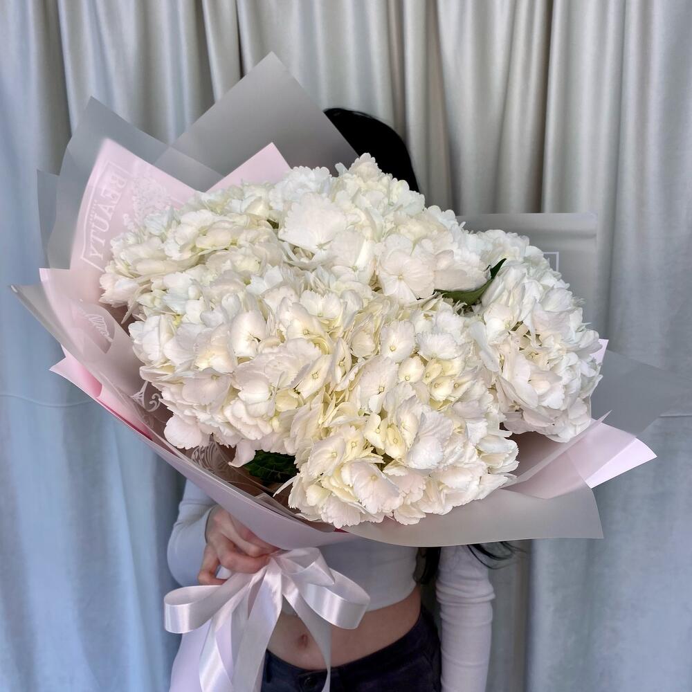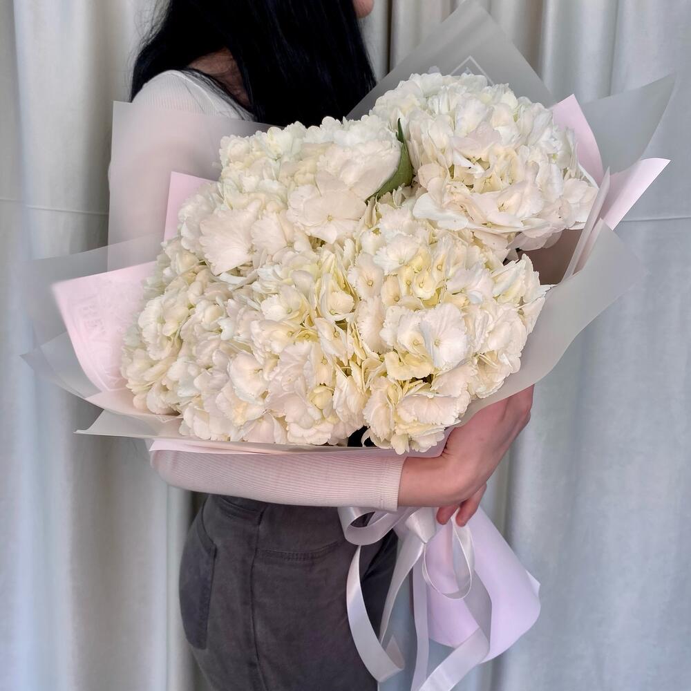 Букет из белых гортензий «Сюрприз для Любимой»