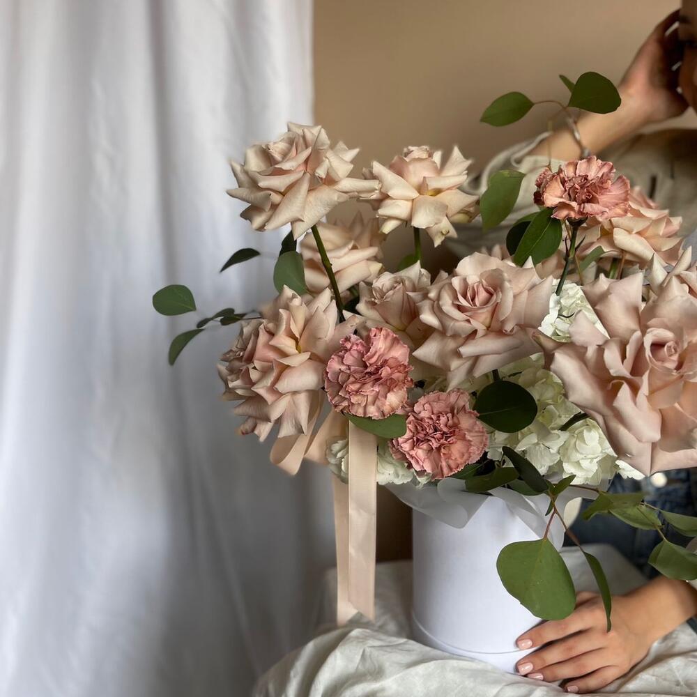 Гвоздики, Кустовые розы, Лизиантусы, Пионовидные розы, Розы