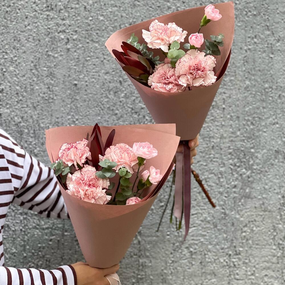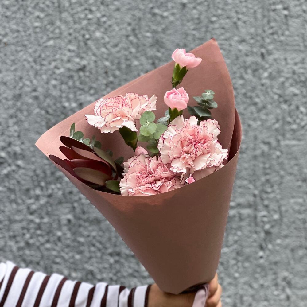 Гвоздики, Пионовидные розы, Розы