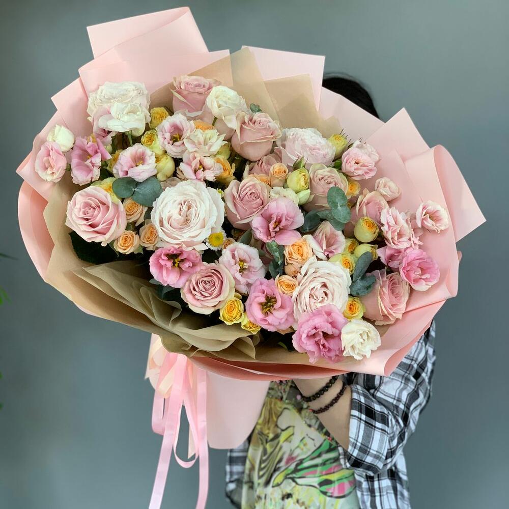 Гвоздики, Кустовые розы, Лизиантусы, Пионовидные розы, Розы