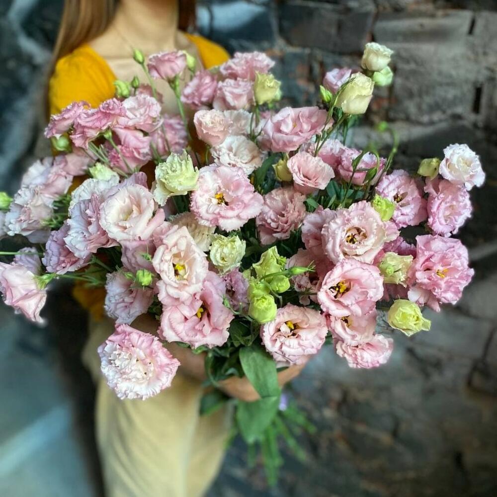 Букет из 15 розовых эустом (лизиантусов) в стильной упаковке “Першерон”