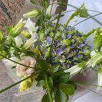 Гортензия – 1 шт.Кампанула – 3 шт.Упаковка – 1 шт.Эустома – 1 шт.Лента атласная – 1 шт.Орнитогалум – 2 шт.зелень сезонная микс – 2 шт.