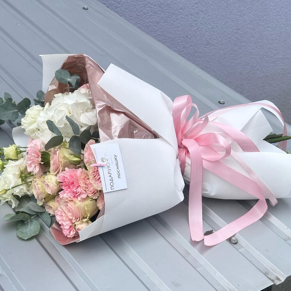 Гвоздики, Лизиантусы, Розы