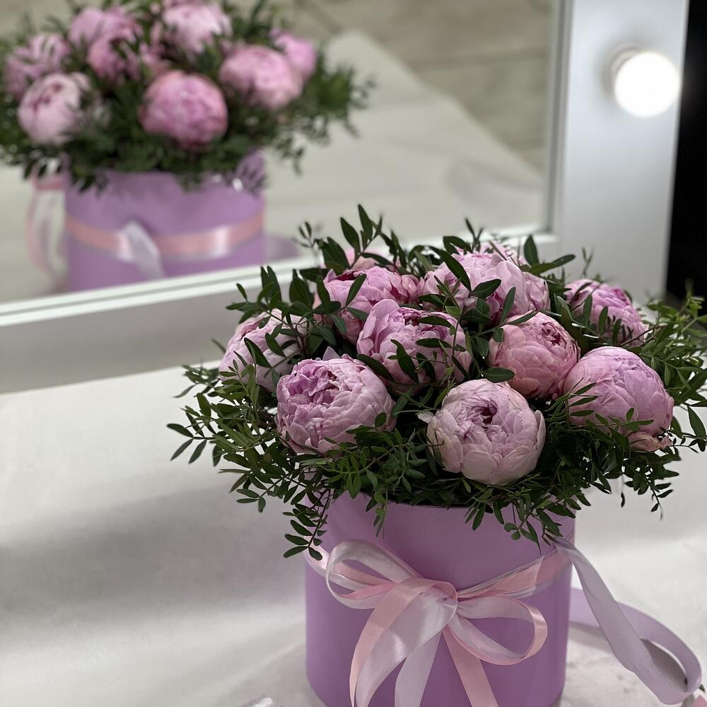 Коробка шляпная – 1 шт.Пион Сара Бернар – 11 шт.