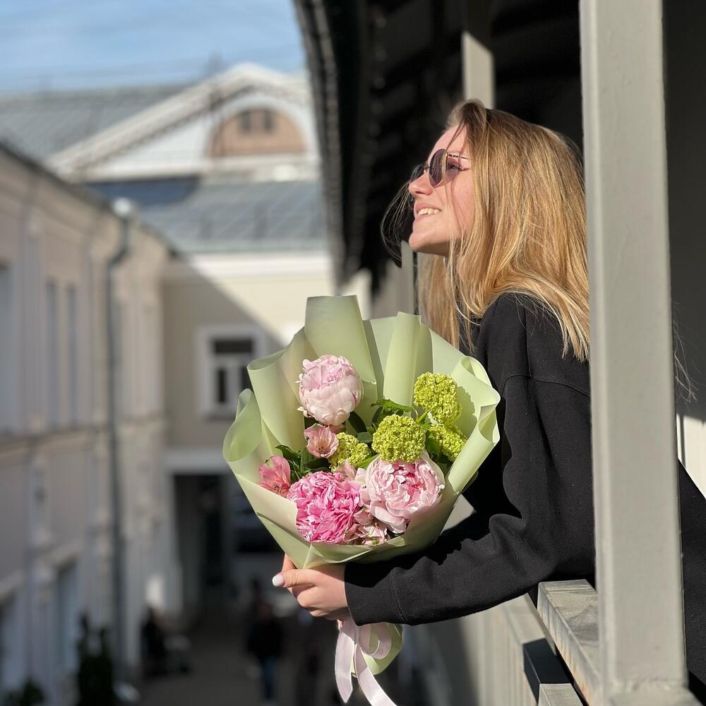 Букет «Маринелли» (пионы, вибурнум, альстромерия)