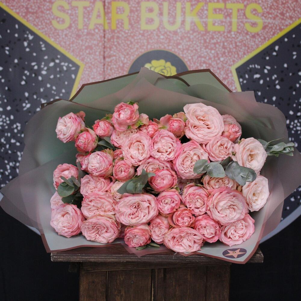 11 кустовых пионовидных роз + эвкалипт