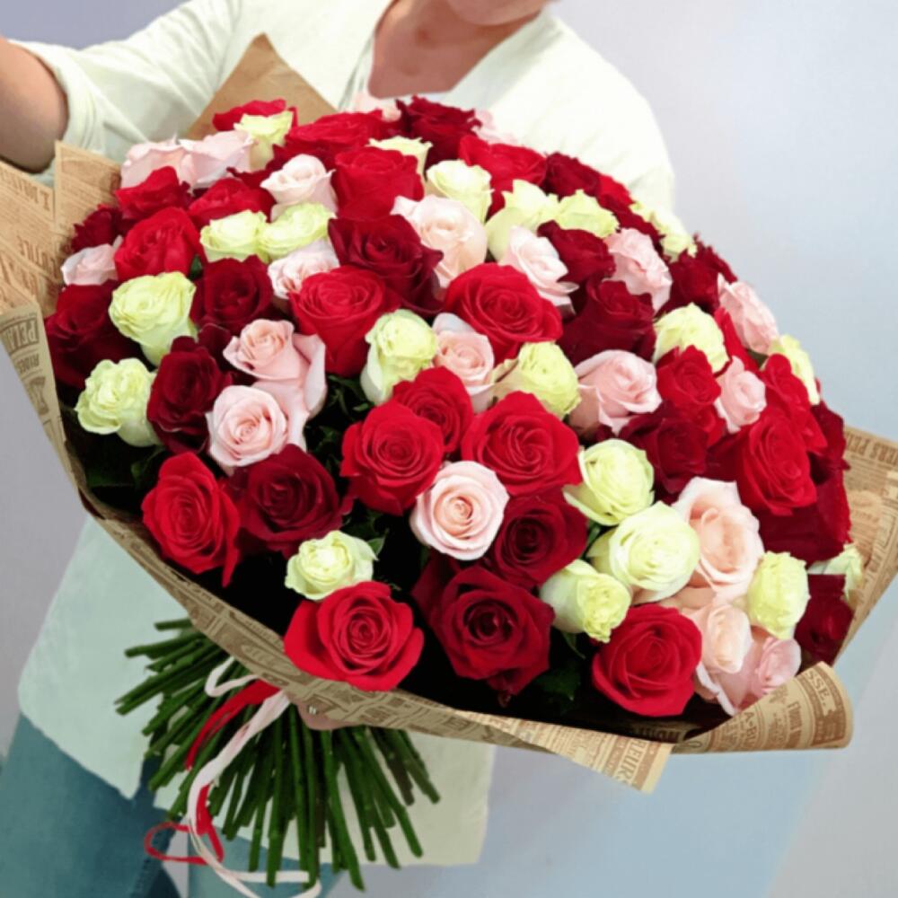 Букет 101 Роза микс 50 см Эквадор
