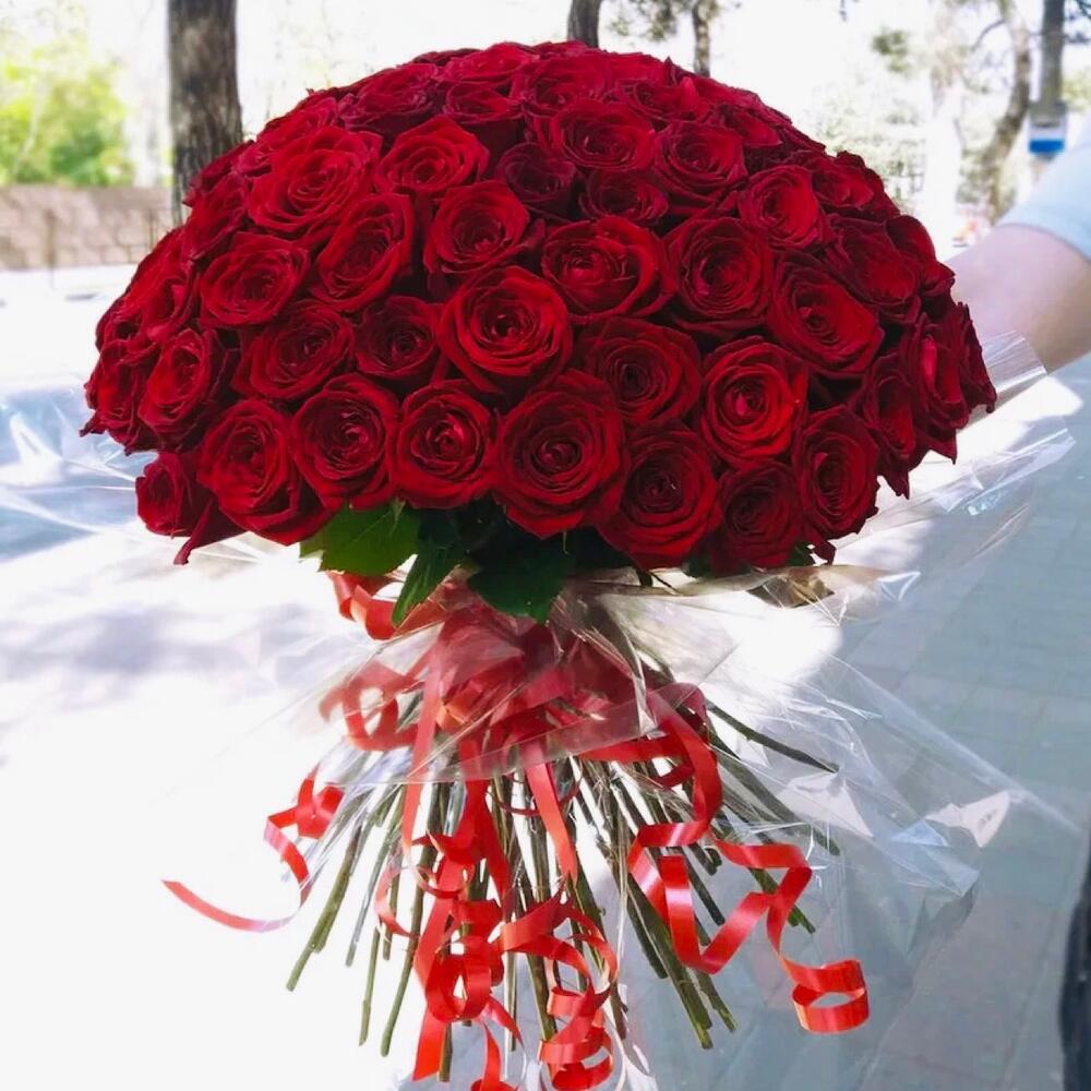 Букет 75 красных Роз 60см Эквадор