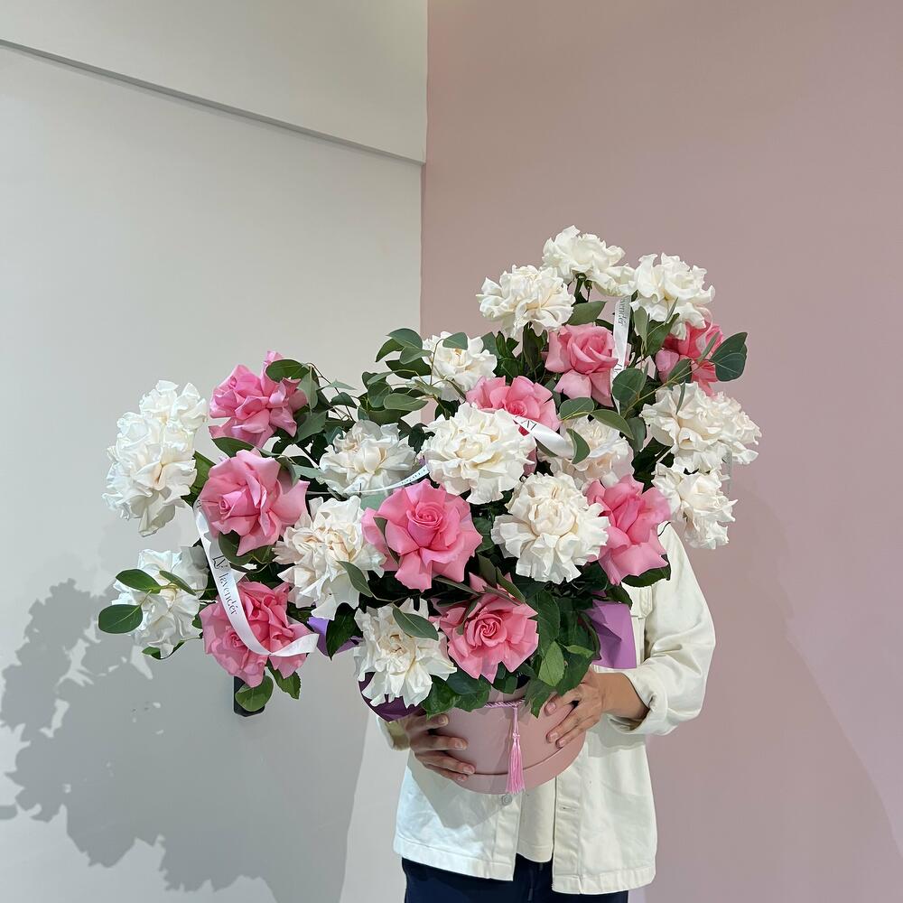 Гвоздики, Кустовые розы, Пионовидные розы, Розы