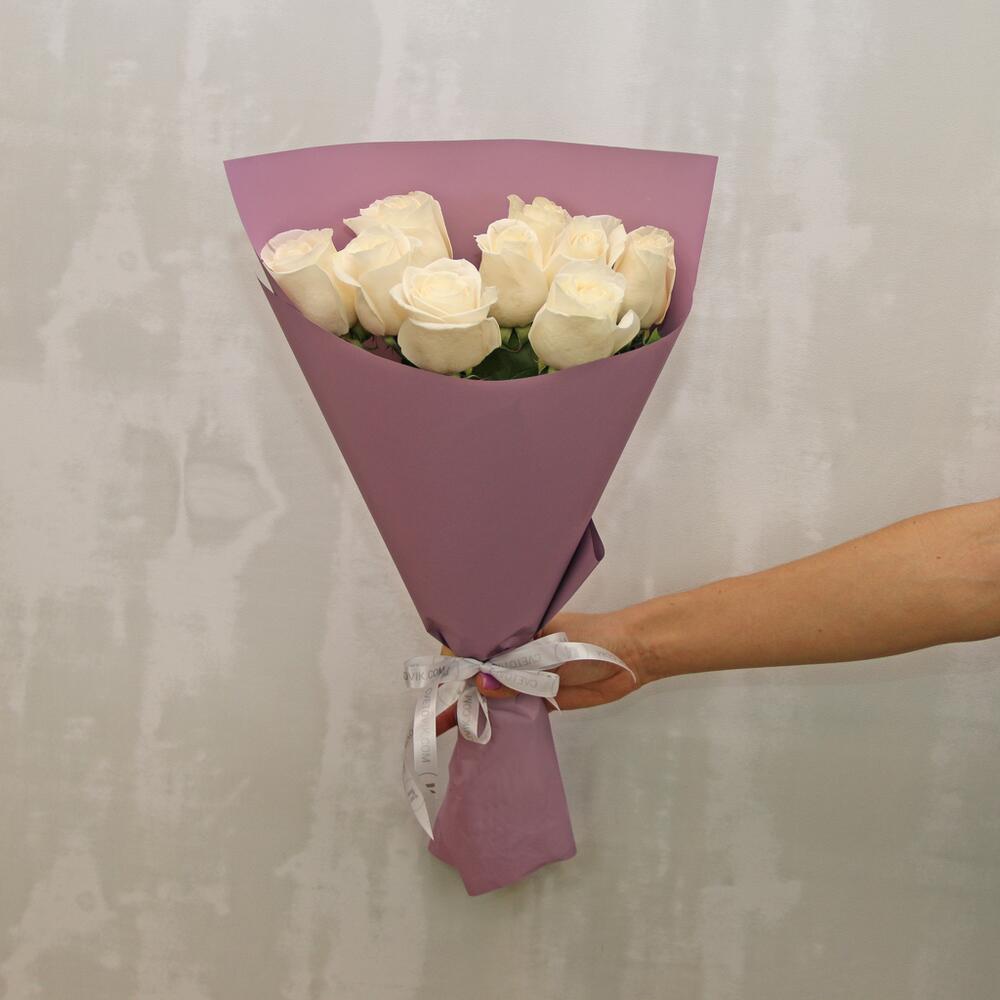 Букет из 9 белых роз premium 40-50 см (Эквадор) в стильной упаковке