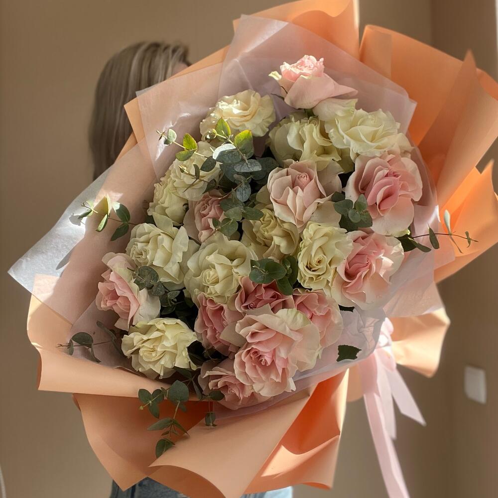 Альстромерии, Кустовые розы, Лизиантусы, Пионовидные розы, Розы, Ромашки