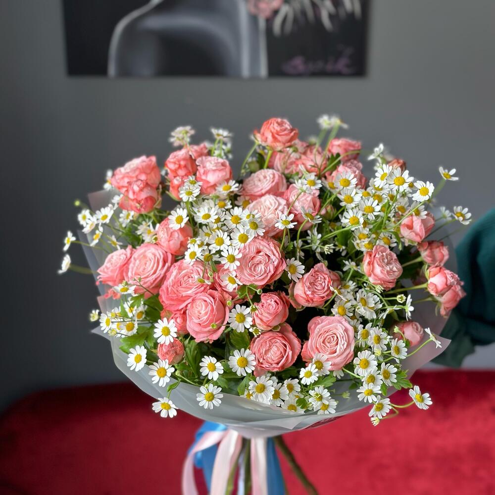 Букет из кустовой розы Бомбастик и Ромашки Матрикарии
