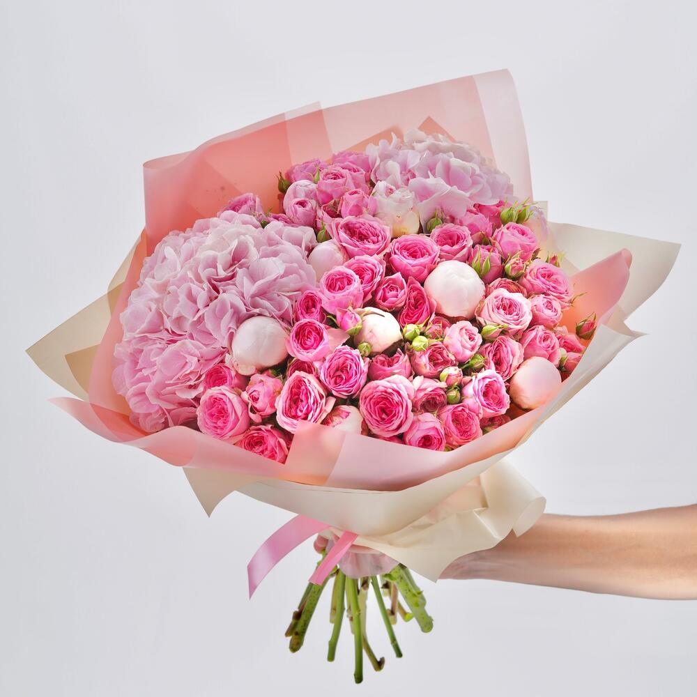 Категории: Гортензии, Кустовые розы, Пионовидные розы, Розы