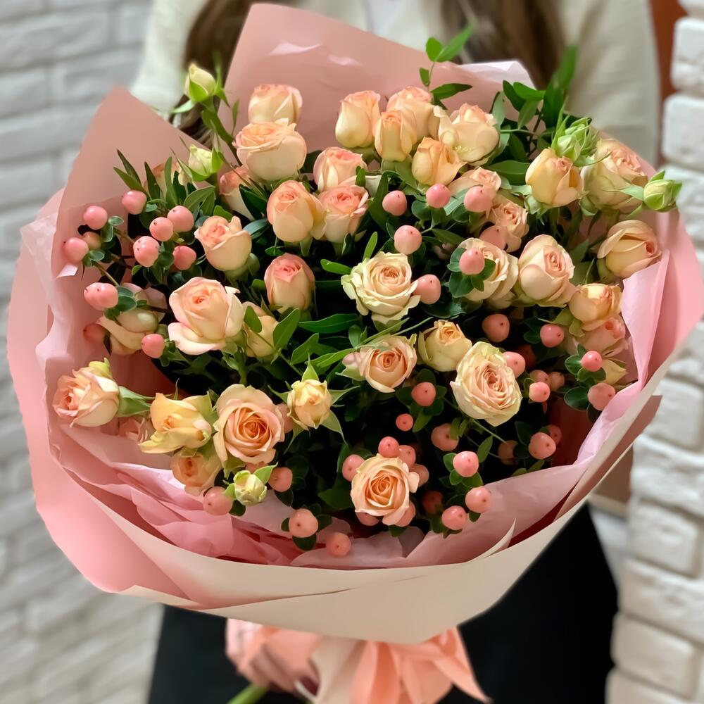Гвоздики, Кустовые розы, Лизиантусы, Пионовидные розы, Розы