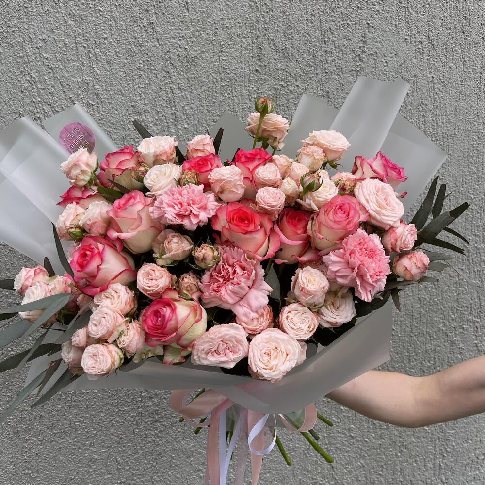 Букет микс из роз и диантусов