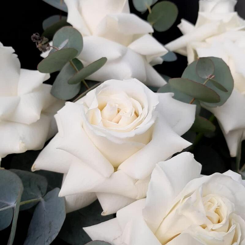 Букет молочных французских роз с пряным эвкалиптом