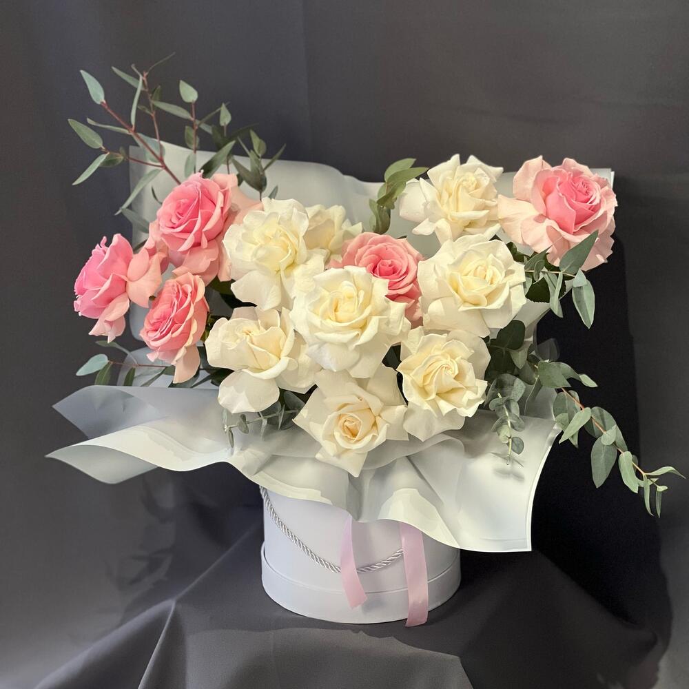 Альстромерии, Кустовые розы, Лизиантусы, Пионовидные розы, Розы, Ромашки