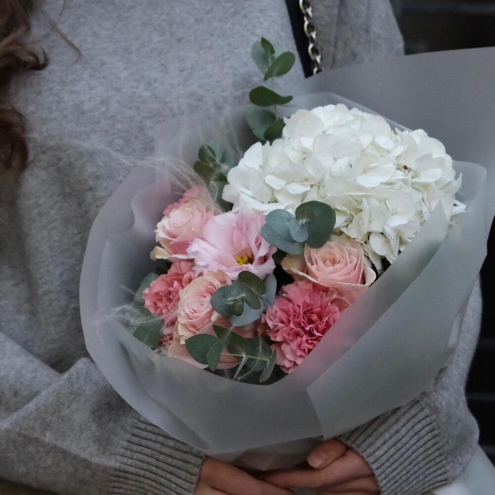 Гвоздики, Лизиантусы, Розы, Тюльпаны