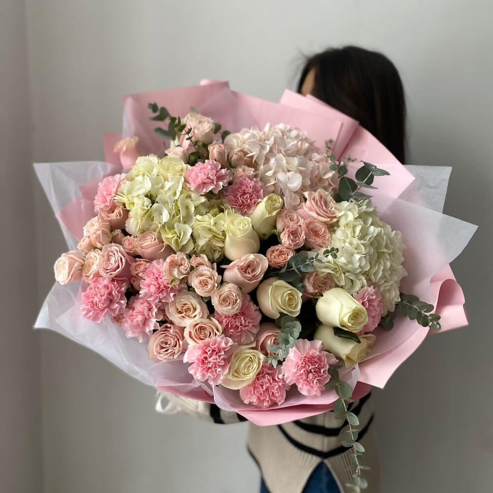 Гвоздики, Кустовые розы, Пионовидные розы, Розы