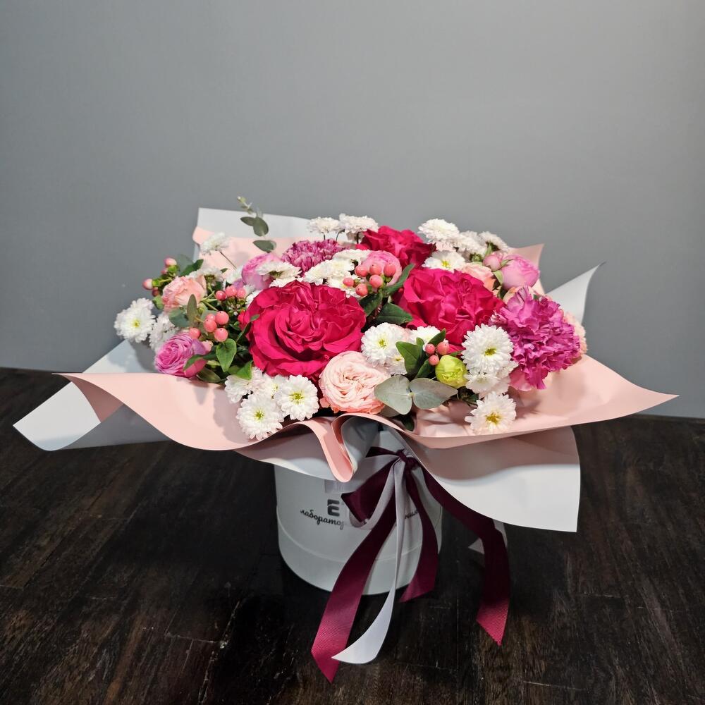 Гвоздики, Кустовые розы, Лизиантусы, Пионовидные розы, Розы